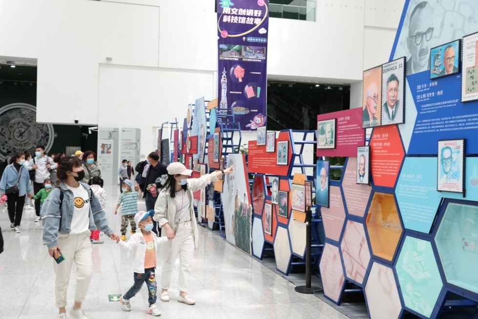 三层环廊区的“诺贝尔化学奖百年邮票展”