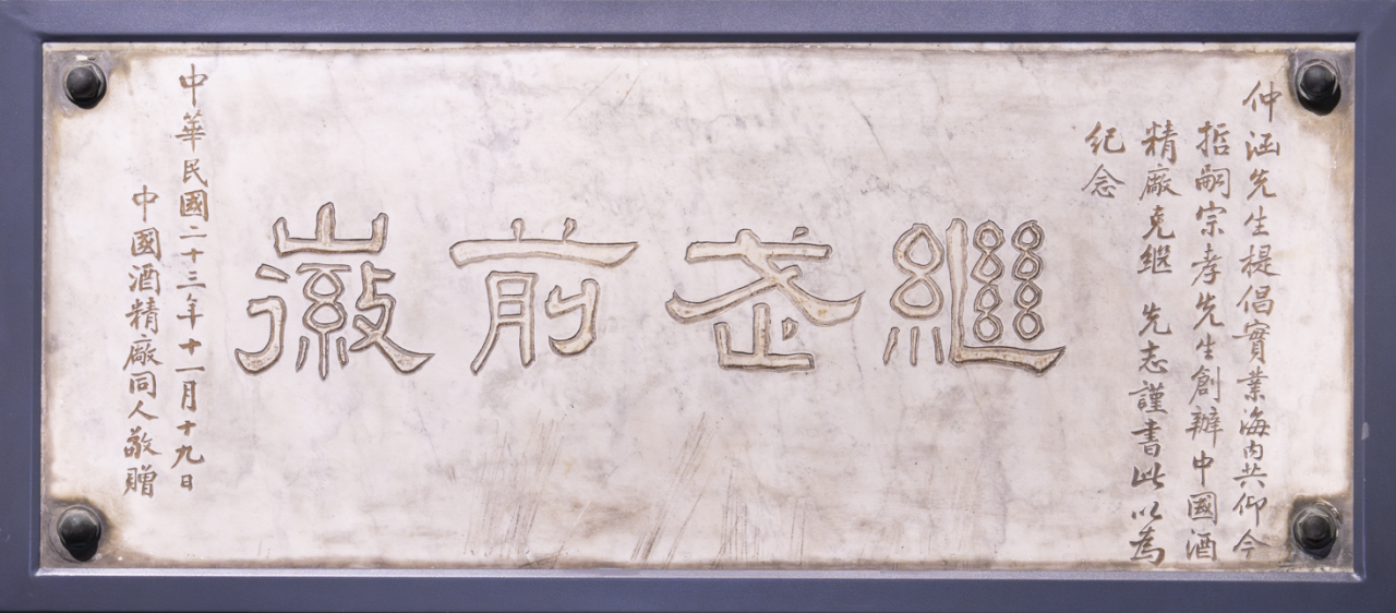 一块铭文牌匾,寄托着化工兴邦、实业救国的美好期待;