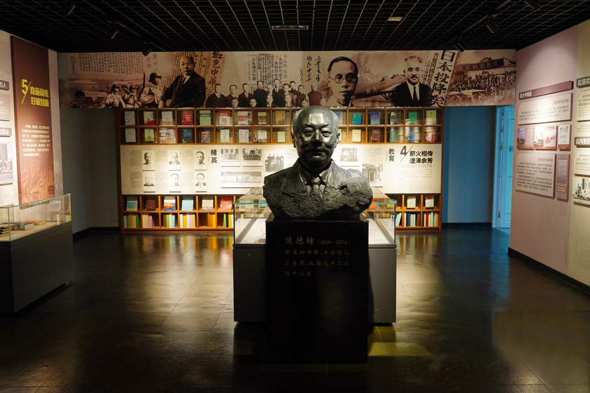展柜里陈列着侯德榜穿过的蓝灰色工作服,用过的钢笔,还有随身携带的小型计算尺。睹物思人,纵然近百年过去,其崇高、朴素、坚毅的人格风范也可强烈感受到。展厅内竖立着侯德榜的半身像。我心中涌起阵阵冲动,欲向这位先贤鞠躬致敬,又担心惊着其他参观者,只好将敬意强压在心头。